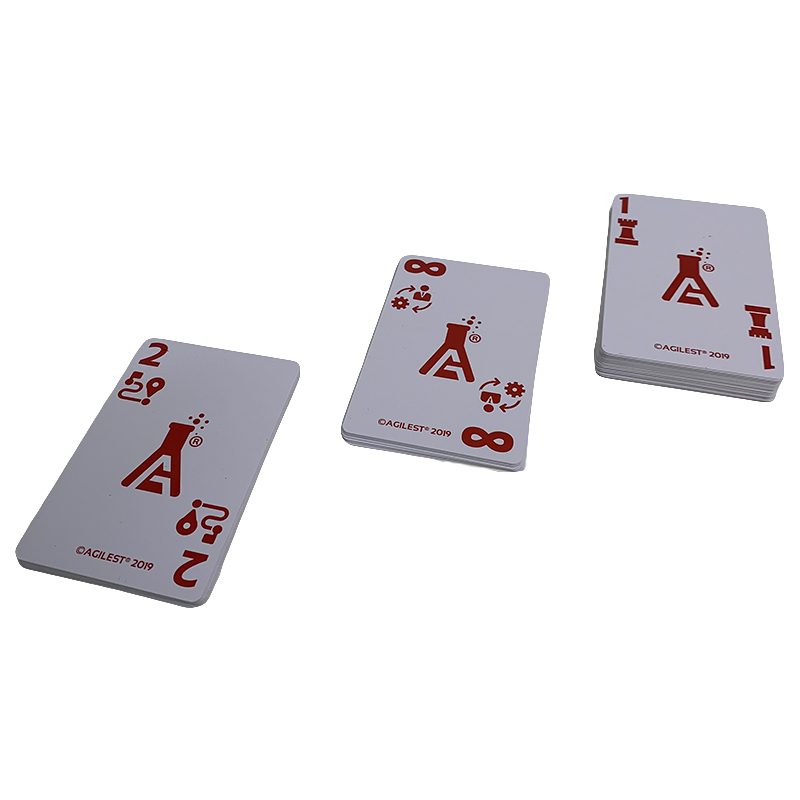 You can make your own, or you can get these fantastic planning poker cards. The cards are cleanable and waterproof because they are plastic, but they are just the right thickness, so they are flexible and durable. Each deck has seven sets of cards, so a single package is enough for most teams. Note: These cards follow Ken Schuaber's (the co-creator of Scrum) and SAFe planning poker specifications.